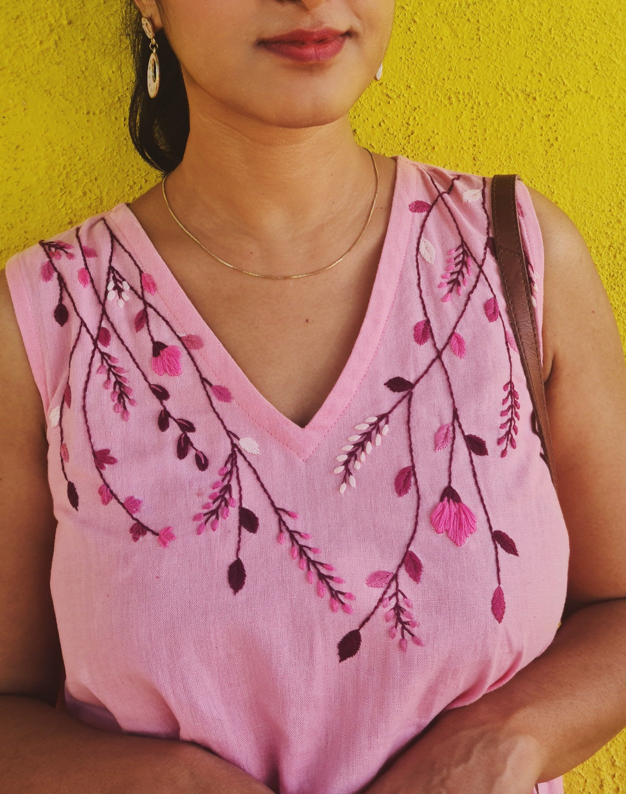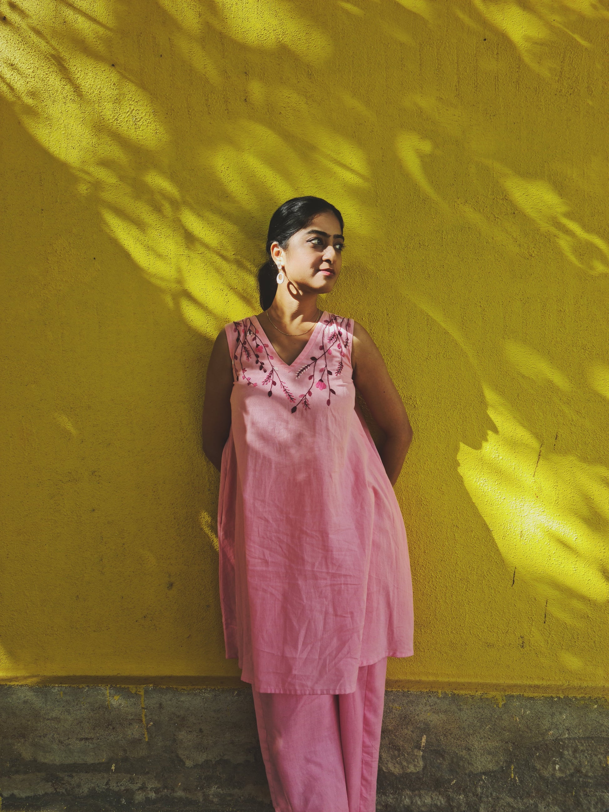 This outfit is a perfect blend of comfort and elegance. Crafted from pure cotton, it's designed for ultimate comfort wear, making it feel light and airy on the skin. The set gains its rich and graceful character from the intricate hand embroidery details, which elevate the simple silhouette into something truly special. As a practical bonus for a day out, the top conveniently includes pockets! It's an elegant option that allows you to feel stylish, put-together, and completely at ease.