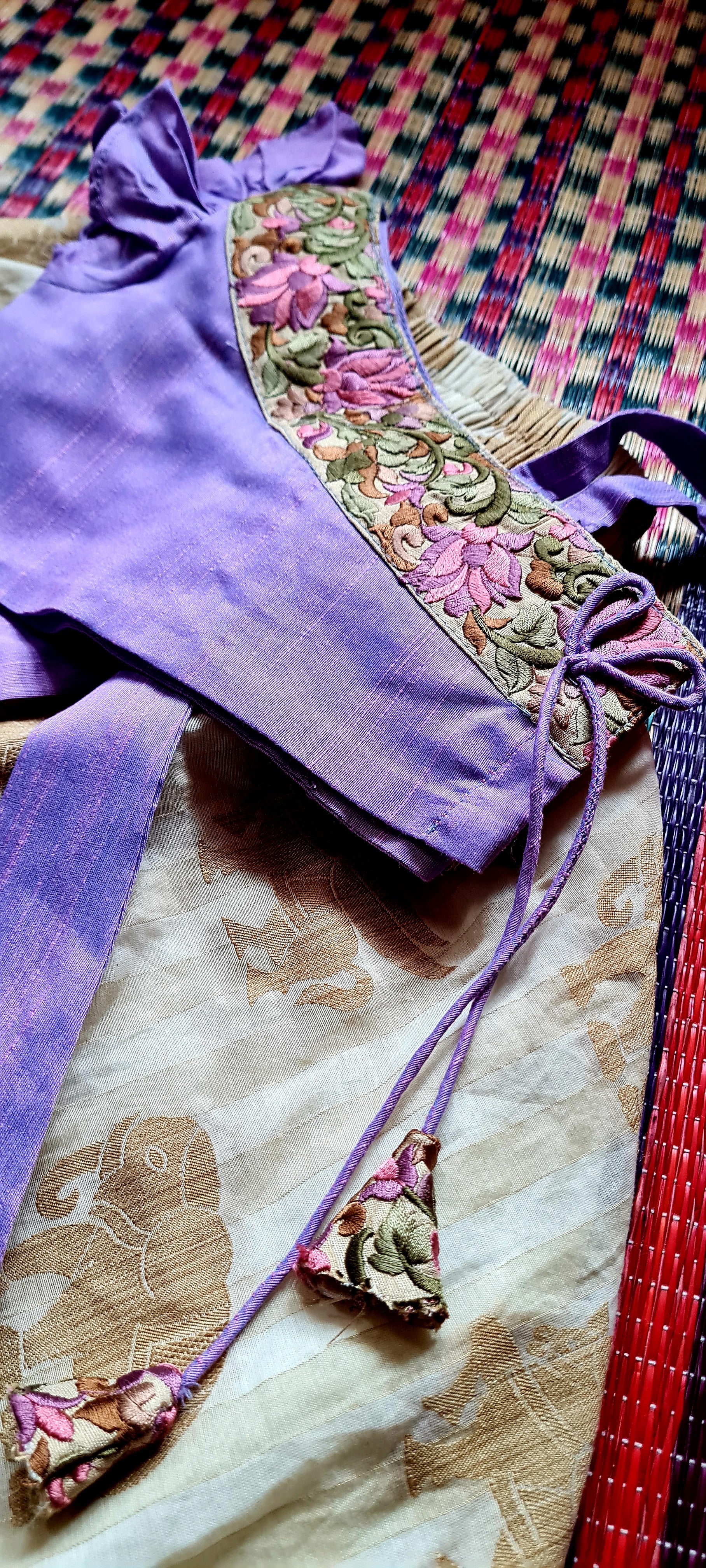 The Crop Top is Embellished With Beautiful Lotus Embroidery.